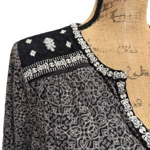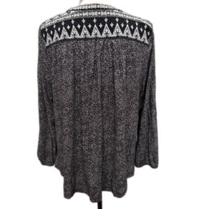 Lucky Brand Black White Peasant Top Metallic Embroidered Bohemian Plus Size 2X