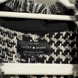 Lucky Brand Black White Tweed Jacket Wool Blend Fringed Edges Size XL