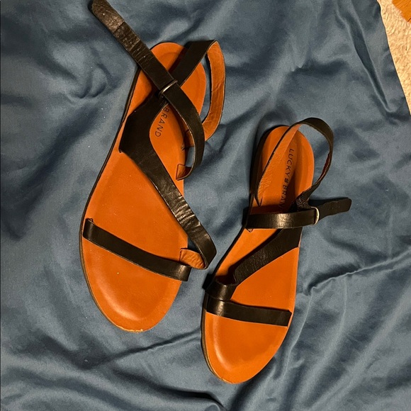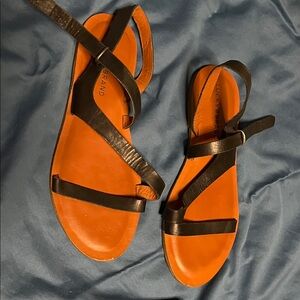Stylish black straps with a brown sole. Ideal for casual wear. Comfortable and trendy.