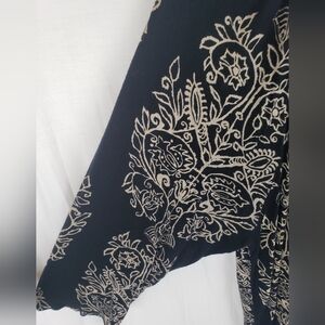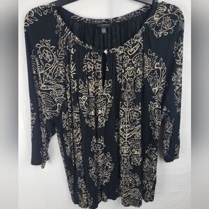 Lucky Brand Black and Gold 3/4th Length Sleeve Boho Women's Shirt Sz 2X