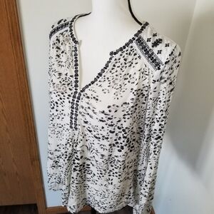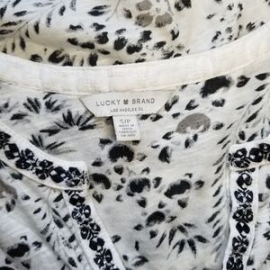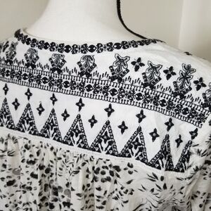 Lucky Brand Black and White Boho Embroidered Floral Shirt