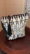 Embroidered tote with striking black and white design. Fully lined with both interior and exterior zipper pockets. Canvas and Cotton.
