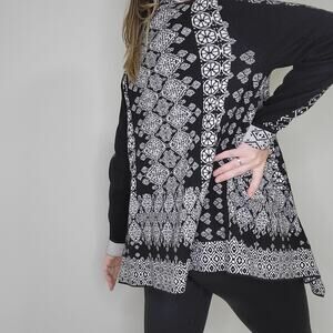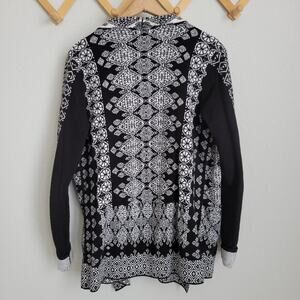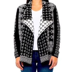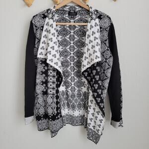 Lucky Brand Black and White Patterned Waterfall Open Front Cardigan Size Medium