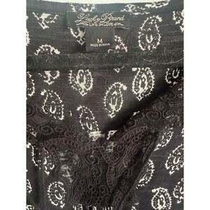 Lucky Brand Black and White VNeck Long Sleeve Tassel Blouse Size M Cold Shoulder