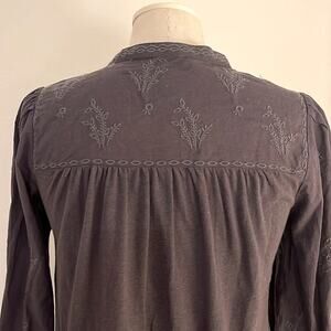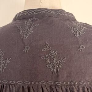 Front button detail. Peasant type sleeve with puffed shoulder. Embroidered floral embellishment at top back and sleeve. So cute!