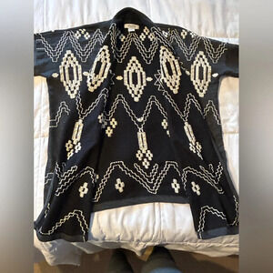 Lucky Brand Bliss Embroidered Open Cardigan Aztec Southwest Medium
