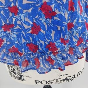 Lucky Brand Blouse One Shoulder Floral Blue Chiffon Elastic Waist Womens XS