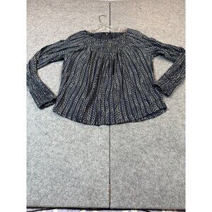 Lucky Brand Blouse Top Women Medium Black Beige Geometric Smocked Front Pullover.