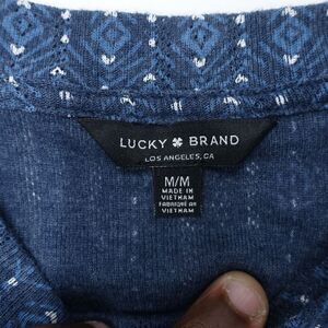 Lucky Brand Blouse Top Women Medium Navy Geometric Crew Neck 3/4 Sleeve Pullover.