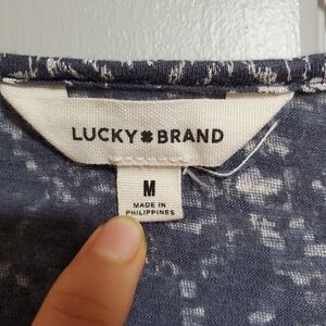 Lucky Brand Blouse Women Size Medium Geometric Print Peasant Top Elastic Cuffs