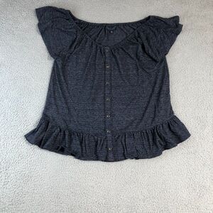 Lucky Brand Blouse Womens Medium Blue Shirt Off The Shoulder Basic Preppy Tee