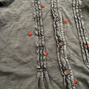 Lucky Brand Blouse Womens S Blue Red Embroidered Flowers Button Up Bohemian