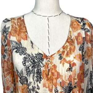 Lucky Brand Blouse Womens Size XS Floral Print Sheer Pleated Boho Lightweight