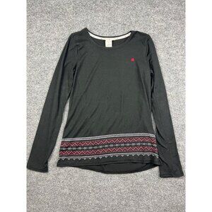 Lucky Brand Blouse Women's Small Black Red Geometric Stripe Long Sleeve Boho