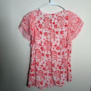 Lucky Brand Blouse Women's Small Pink Paisley V-Neck Ruffle Boho Shirt Top