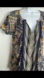 This is a bohemian-style short-sleeve top by Lucky Brand featuring a beautiful, intricate "Persian carpet" or "tile" print in shades of blue, navy, golden-yellow, and off-white. The top has a V-neckline. Perfect for a casual, bohemian-chic look. The print is a mix of geometric patterns and small designs, giving it a unique and eye-catching appearance.