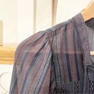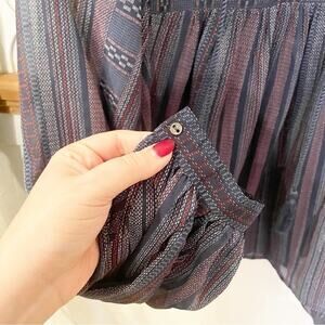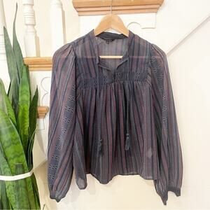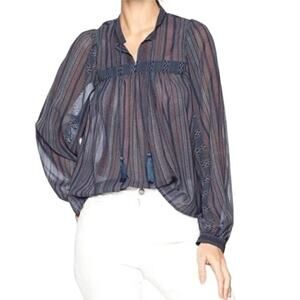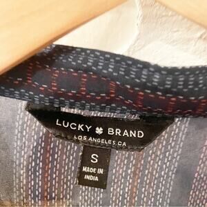 Lucky Brand Blue Balloon Sleeve Border Peasant Top Size S