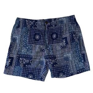 Lucky Brand Blue Bandana Flat Front 7" Shorts Mens Size 34 Flat Front Pockets