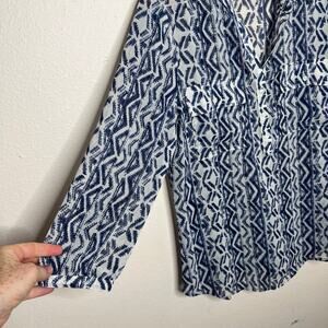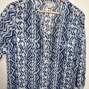 Lucky Brand Blue Boho Peasant Blouse Medium. Preowned and in excellent condition. Light weight, long sleeve, v neck opening and two front pockets. Please see all photos. Approx measurements in pictures.