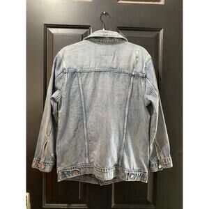 Lucky Brand Blue Boyfriend Trucker Distressed Denim Jeans Jacket Size Small