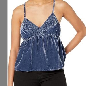 This stunning blue camisole from Lucky Brand showcases a sleeveless design with a bustier style, adorned with exquisite embellishments. Its luxurious fabric and elegant silhouette make it a standout piece for any occasion.