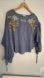 Lucky Brand Blue Chambray Embroidered Top Daisy 3D Beaded Tie Sleeve Boho Hippie