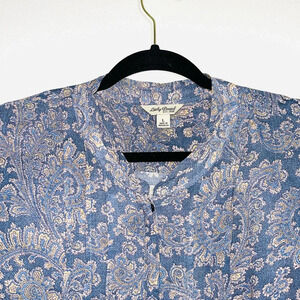 Lucky Brand Blue & Cream Paisley Print Button Front Blouse Large Women’s