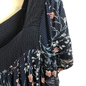 Chic blue blouse with floral pattern. Short sleeves. Square neckline. Perfect for casual wear.