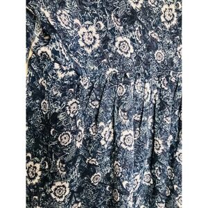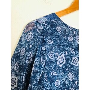 Lucky Brand Blue Floral Button Up Peasant Blouse Small Bohemian Long Sleeve