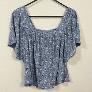 Lucky Brand Blue Floral Flare Short Sleeve Blouse