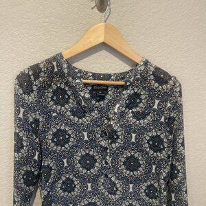 Lucky Brand Blue Floral Mix Print Sheer Long Sleeve Top Size XS Boho Peasant