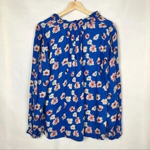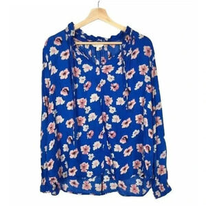 Lucky Brand Blue Floral Print Boho Peasant Long Sleeve Top L