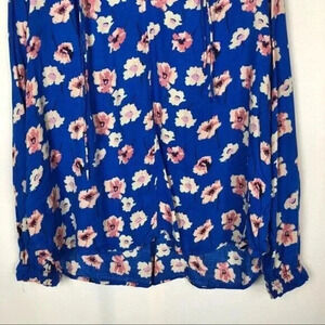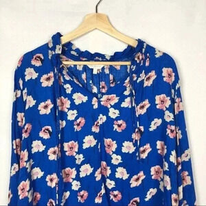 Lucky Brand Blue Floral Print Boho Peasant Long Sleeve Top