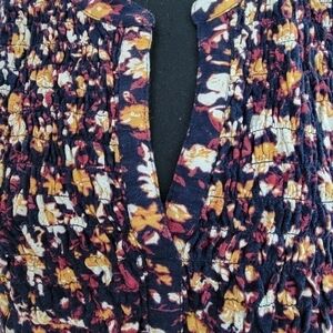 Lucky Brand blue and yellow floral split neck tunic with shirring. Long sleeve, elastic cuff. Measures flat 16" underarm seam to seam. Length measures 22" in front and 24" in back shoulder to hem. Sleeve measures 20" shoulder to cuff. Stretchy cotton/modal. Size S/P