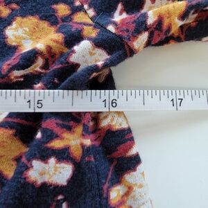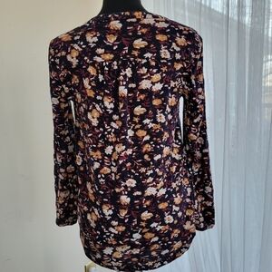 Lucky Brand blue and yellow floral split neck tunic with shirring. Long sleeve, elastic cuff. Measures flat 16" underarm seam to seam. Length measures 22" in front and 24" in back shoulder to hem. Sleeve measures 20" shoulder to cuff. Stretchy cotton/modal. Size S/P