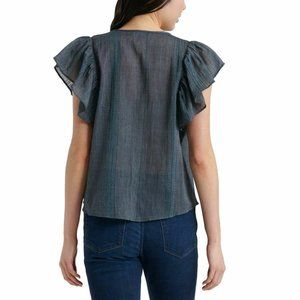 Lucky Brand Blue Flutter Sleeve Shirt Size Large
