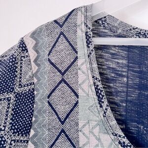 Lucky Brand Blue Green Multi Border Print Cotton Modal Tee 1X