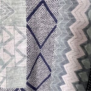 Lucky Brand women's scoop neck, short sleeve, curved hemline fashion knit border print multi blue green tee.