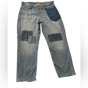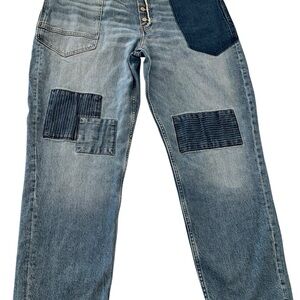 Lucky Brand Blue Patchwork Women’s Jeans Boy Mid Rise Relaxed Straight 16 33