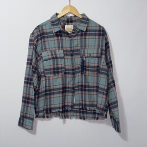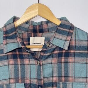 Lucky Brand Blue Raw Edge Plaid Button-up Shirt Womens size large
