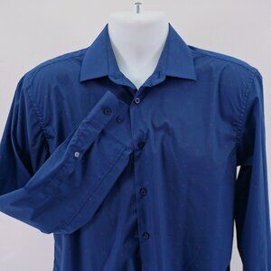 Lucky Brand Blue Slim Fit Stretch Medium Collared Dress Shirt Dotted Pattern