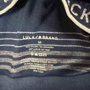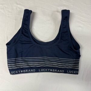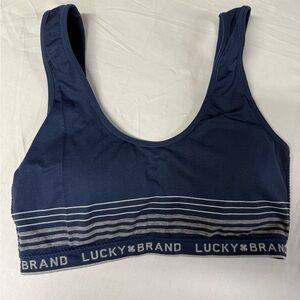 Discover the perfect blend of comfort and functionality with the Lucky Brand blue sports bra. Designed with a thick elastic band for added support, this minimalist piece is crafted from a stretchy material ideal for both exercise and daily wear. Its scoop neck design ensures a sleek and modern look.
