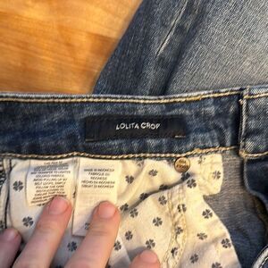 Size 2, cropped 26 and team 7 1/2 inch drives 13 1/2 inches waist lay flat stretchy