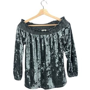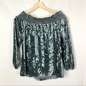 Lucky Brand Blue Velour Velvet Off Shoulder Long Sleeve Blouse