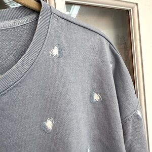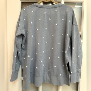 Lucky Brand Blue & White Hearts Pullover Crew Neck Sweatshirt Size Medium M