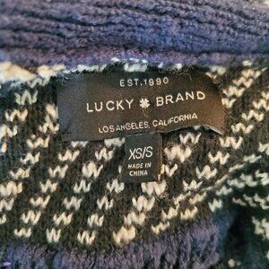 Lucky Brand Blue White Open Front Short Sleeve Boho Fringe Poncho Cardigan XS/S