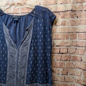Lucky Brand Blue and Gray Patterned Blouse Size Small