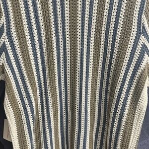 Lucky Brand Blue and Tan Striped Cardigan