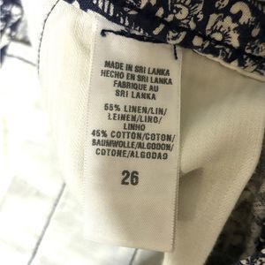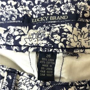 Lucky brand blue and white tribal aztec floral printed boho bohemian summer spring casual daily everyday linen blend soft lightweight front and back pockets shorts size 26.