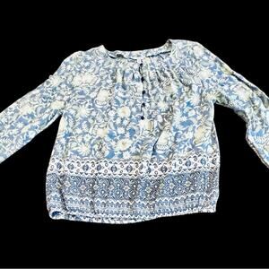 Lucky Brand Blue and Yellow Floral Blouse